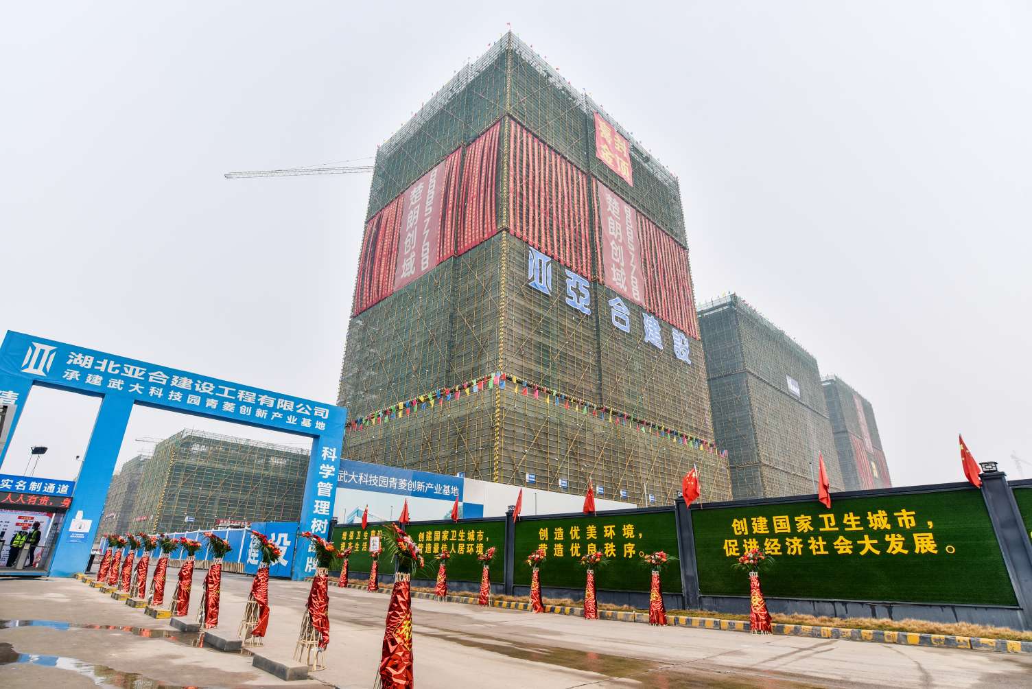 2021年,湖北亞合建設工程有限公司承接了武大科技園青菱創新產業基地項目的建設任務。在工程建設中,亞合建設本著追求卓越、精益求精的建筑精神,以科學的管理、精細的施工、精湛的工藝、高效的進度,提前將青菱產業園項目的一期主體結構建設封頂。