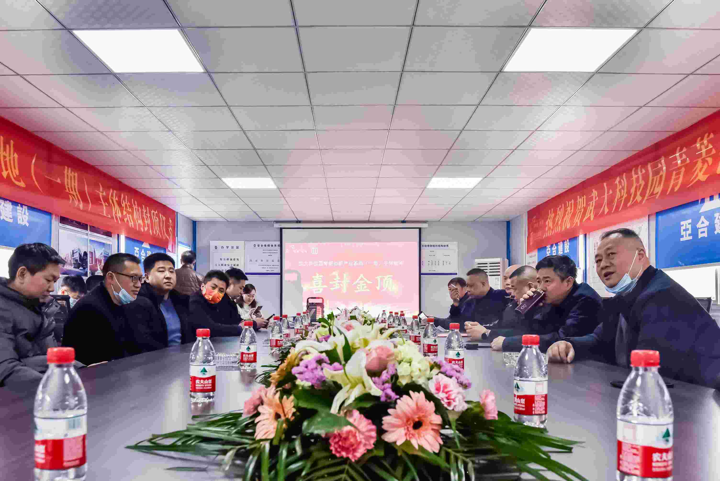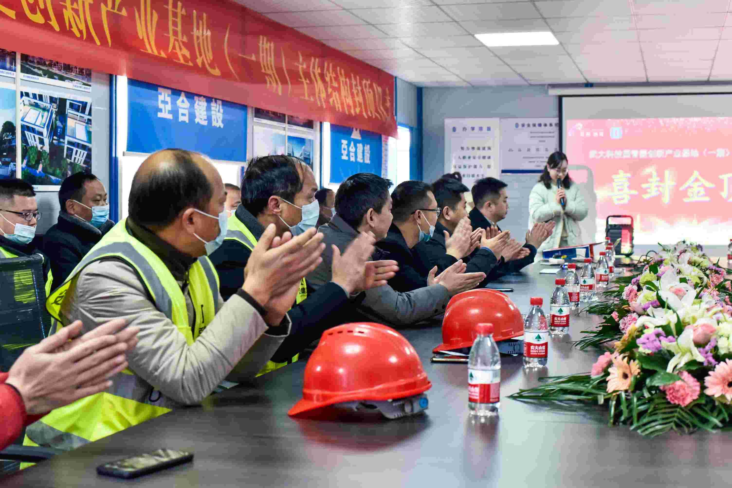 2022年1月20日上午,武大科技園青菱創新產業基地項目迎來了極具特殊意義的時刻,隆重慶祝項目(一期) 主體結構喜封金頂!這標志著青菱產業園建設工程取得了重要的階段性勝利,為保證后續施工的順利實現奠定了堅實的基礎。施工總承包單位亞合建設董事長李衛亞、總經理羅奇志攜公司部門及項目管理人員與建設單位楚朗控股、監理單位博成建設、參建單位等相關負責人齊聚現場共同見證這一榮耀時刻。